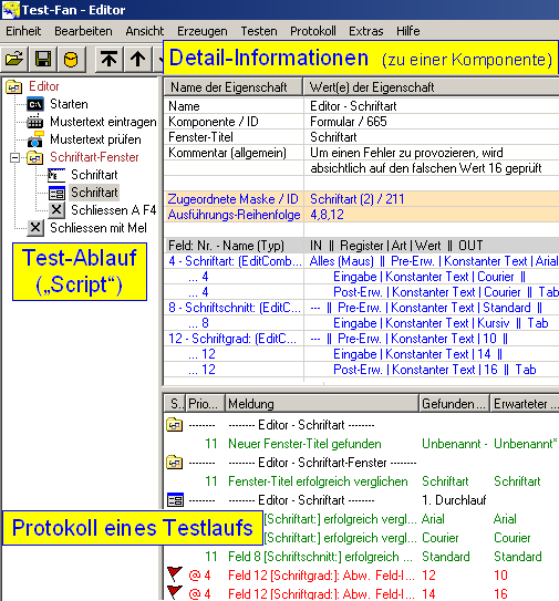 - Die Anordnung und Benennung der Komponenten ist komplett durch den Fach-Anwender möglich, dadurch entstehen leicht verständliche und wartbare Testscripte,